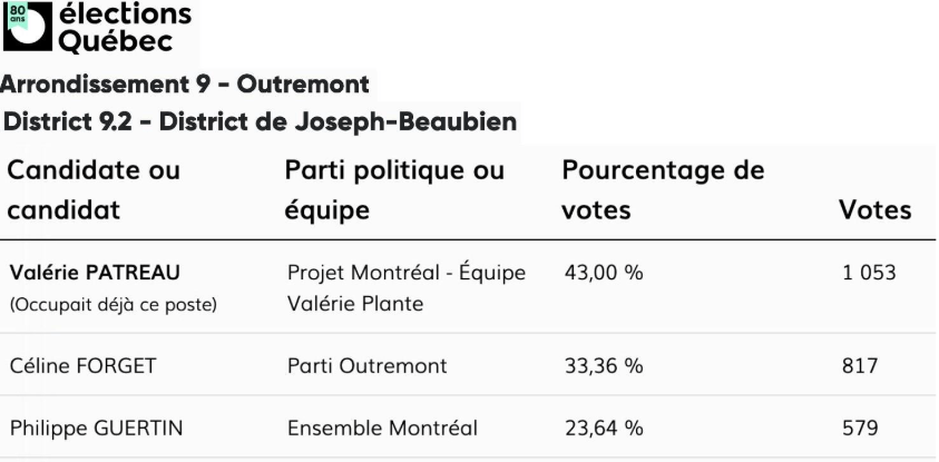 Les résultats de l’élection de 2021 dans le district ne laissent aucun doute à ce sujet. Valérie Patreau de Projet Montréal avait recueilli 1053 votes et c’est Céline Forget du Parti Outremont qui était arrivée bonne deuxième avec 817 voix. De fait, elle en a obtenu 238 de plus que Philippe Guertin d’Ensemble Montréal qui n’a reçu que 579 votes.
